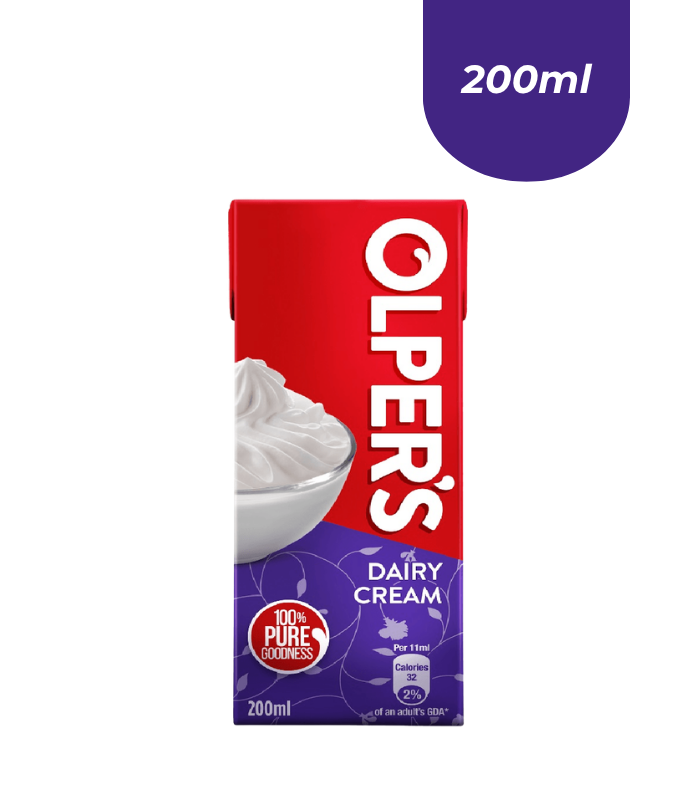 OLPER’S Dairy Cream is deliciously thick and creamy because it is made from fresh milk. It is the perfect all-purpose cream whether used as a spread or dip for breakfast, as an ingredient for cooking savoury or sweet dishes or as a whipping cream for desserts.