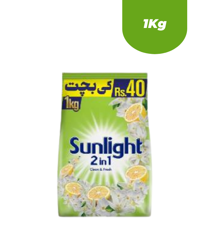 Sunlight washing powder, a Unilever brand, is a popular, affordable detergent in Pakistan known for its 2-in-1 formula (cleaning and fragrance). It offers superior cleaning, keeping clothes bright and fresh for up to 40 washes. Common variants include Green (Clean & Fresh) and Pink (Jasmine Fresh).